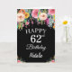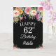 62e anniversaire Watercolor Floral Flowers Carte noire avec nom et âge personnalisés. Pour plus de personnalisation, cliquez sur le bouton "Customiser" et utilisez notre outil de conception pour modifier ce modèle.