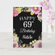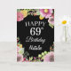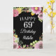 69e Anniversaire Floral Flowers Carte noire avec nom et âge personnalisés. Pour plus de personnalisation, cliquez sur le bouton "Customiser" et utilisez notre outil de conception pour modifier ce modèle.