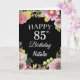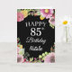 85e anniversaire Watercolor Floral Flowers Carte noire avec nom et âge personnalisés. Pour plus de personnalisation, cliquez sur le bouton "Customiser" et utilisez notre outil de conception pour modifier ce modèle.