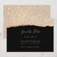 Cette carte de save the date élégante présente un marbre de glitter doré scintillant avec des veines dorées fausses sur fond noir. Le verso présente un fond qui ressemble à du marbre de glitter doré scintillant. Parfait pour un mariage glamour, luxueux et chic.