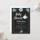 Carte noire fleurs bleues Boy baby shower invitati