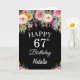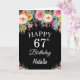 67e anniversaire Watercolor Floral Flowers Black Card avec nom et âge personnalisés. Pour plus de personnalisation, cliquez sur le bouton "Customiser" et utilisez notre outil de conception pour modifier ce modèle.