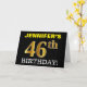 Ce design de carte de voeux d’anniversaire comporte un message comme "46e anniversaire de JENNIFER!", avec le "46e" ayant une apparence de couleur fausse/imitation or. Le nom du destinataire sur le devant peut être customisé, et l’arrière - plan avant est de couleur noire. Il comporte également un message d'anniversaire personnalisé à l'intérieur. Une carte de voeux comme celle-ci pourrait peut-être être remise à quelqu'un pour célébrer son quarante-sixième anniversaire. [~Z0000183]