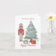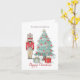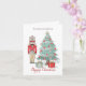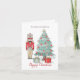 Carte de Noël mignonne pour les enfants - une aquarelle illustration Nutcracker, pin, cadeaux, baubles et cheval à bascule i