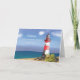 Customisez cette carte pour un type ou une fille avec ce phare aquarellé qui domine sur le côté droit de la carte. En bord de mer, cette image côtière montre le phare entouré de rochers et de plantes avec le sable et la mer. Merveilleuse carte personnelle à avec quelqu'un heureux anniversaire!