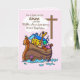 L’Arche de Noé sur la carte Baptême d’une fille rose est si précieuse. Les animaux regardent l’Arche de Noé, voyant la croix à travers les nuages. Carte sucrée à donner à une fille alors qu'elle célèbre le cinquième anniversaire de son baptême. Vous pouvez personnaliser le nom de cette fille spéciale sur cette carte.