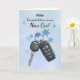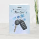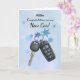 Félicitez quelqu'un de spécial avec une nouvelle carte de voiture personnalisée portant son nom. Ce design à thème hivernal présente des touches d'aquarelle rehaussées de flocons de neige bleus, symbolisant des jalons passionnants et des départs frais en saison de neige. Parfait pour customiser de célébrer un premier véhicule, un cadeau de voiture de vacances ou tout nouveau voyage en hiver.