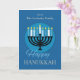 Carte Nom personnalisé Hanoukka Menorah sur bleu foncé