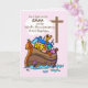 L’Arche de Noé sur la carte Baptême d’une fille rose est si précieuse. Les animaux regardent l’Arche de Noé, voyant la croix à travers les nuages. Carte sucrée à donner à une fille alors qu'elle célèbre le neuvième anniversaire de son baptême. Vous pouvez personnaliser le nom de cette fille spéciale sur cette carte.