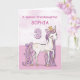 Cette jolie carte fera "oh" et "ah" votre petite-fille pour son 3ème anniversaire quand elle verra ce poney rose et blanc portant une couronne avec une touche de scintillement doré sur sa crinière, sa queue et sa couronne. Jolie carte pour souhaiter un joyeux 3ème anniversaire à votre petite-fille ! Personnalisez avec le nom de votre petite-fille.