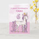 Une jolie licorne rose tout comme votre petite-fille qui caracole avec le numéro six ! Des détails dorés brillants sont tissés dans sa crinière et sa queue. Carte parfaite pour souhaiter son 6ème anniversaire à votre petite-fille ! Personnalisez cette carte avec le nom de votre petite-fille.