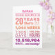 Carte d'anniversaire personnalisée « Vous avez été aimé pendant 20 ans » avec des nombres de jalons - années, mois, semaines, jours, heures et minutes. Ajoutez le nom du destinataire pour une touche personnelle et modifiez le message à l'intérieur pour le rendre unique. Une carte d'anniversaire sincère et unique, parfaite pour célébrer un 20e anniversaire.