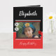 Carte de voeux d'anniversaire florale de photos en noir et rouge. Personnalisez cette Carte de voeux avec un nom, votre photo et un message à l'intérieur. Pour toute personne ou occasion. **Samplephoto©Lynnrosedesigns**