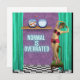Vignette amusante et amusante inspirationnelle caractéristiques "Normal est surévalué" en police de néon avec femme vintage en maillot de bain mignon debout sur la chaise...n'oublions pas non plus de noter que le poisson rouge saute de la foule dans son propre bol !