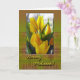 Des tulipes jaunes ornent la couverture de cette carte de voeux du Nouvel An de Norooz. Art, image et verset copyright Shoaff Ballanger Studios.