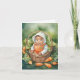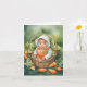 Une aquarelle douce illustration d'un bébé souriant assis dans un panier tressé entouré de verdure et de carottes oranges. Le bébé est habillé d'un gilet orange confortable avec un sweatshirt à capuchon blanc, se mariant adorablement au thème de la récolte du jardin. Un arrière - plan verdoyant et des carottes éparpillées au sol complètent le cadre chaleureux et sain.