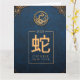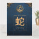 Célébrez la joie du Nouvel An chinois du serpent avec notre carte de voeux pliée d'or rouge et bleu de jour férié avec lanterne chinoise traditionnelle rouge et or et fleurs d'or. À l'intérieur de la carte de voeux "Souhaitez-vous la prospérité et la bonne fortune dans l'année du serpent 蛇 年 快 La famille Zhang" est écrit en rouge. Vous pouvez customiser ce design avec votre nom ou votre nom de famille en cliquant sur le bouton "Personnaliser".