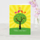 Deux oiseaux, assis sur un arbre, K-I-S-S-I-N-G ! Des oiseaux stylisés colorés au sommet d'un arbre avec des feuilles du coeur et des rayons de soleil jaunes qui rayonnent. Une carte de félicitations joyeuse pour tout couple débutant dans une nouvelle maison.