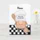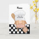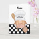 La carte présente un chef fantaisiste aux deux adorables ponytails, casquette et tablier d'un chef. Le gnome est engagé dans la cuisine, tenant une cuillère en bois, et la scène de la cuisine est dressée contre un charmant arrière - plan à damiers. Le design général reflète une atmosphère ludique et légère. Ajoutez le nom au centre du casquette du chef que porte le gnome.