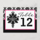 Carte Numéro de table Black Hot rose Damas Lace Im