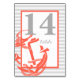 Carte de numéro de table imprimée avec design d'ancre grise et corail pour compléter notre ensemble de faire-part de mariage, peut être personnalisé et commandé individuellement.
