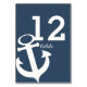 Carte de numéro de table imprimée avec ancrage bleu marine et blanc pour compléter notre ensemble de faire-part de mariage, peut être personnalisée et commandé individuellement.