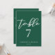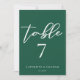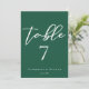 Cette carte de numéro de table mariage vert émeraude personnalisée présente un script blanc classique pour un couple se marier dans une forêt ou un autre lieu naturel. Célébrez votre amour avec cette couleur tranquille et coordonnez avec notre collection de typographie minimaliste correspondante.