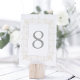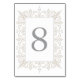 Les cartes numériques modernes d'inspiration marocaine comportent une bordure géométrique en gris pâle et en lin beige, entourant votre numéro de table en gris moyen. Le design se répète à l'envers. Coordonnée avec notre suite faire-part de mariage Marrakech en Linen Greige.