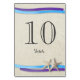 Jolie carte de numéro de table en ruban violet et bleu et d'étoiles de mer pour compléter notre ensemble d'invitation à thème de plage, peut être personnalisée et commandé individuellement.
