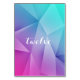 Carte de numéro de table Mariage aux tons joaillés et modernes avec un arrière - plan triangle géométrique funky multicolore (bleu, violet, rose et turquoise). Ce design chic et simple est un choix unique pour un mariage moderne. Facile à customiser avec le ou les numéros de table appropriés. Cliquez sur "Customiser" pour trouver d'autres options de personnalisation.