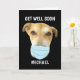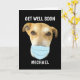 Mettez un sourire heureux sur le visage de quelqu'un avec ce Get Well Bientôt mignon chien dans Masque visage Carte magnétique personnalisée. Il est conçu avec un grand visage de chiot brun portant un masque sur le centre avant. L'arrière - plan est personnalisable en noir et l'accueil est "va vite" suivi par le nom en gras en lettres blanches. Vous pouvez choisir votre propre visage de photo d'animal de compagnie ou garder l'adorable chiot comme indiqué. Parfait pour un enfant ou un amoureux des chiens. CLIQUEZ SUR PERSONNALISER L'OPTION MODÈLE ET ENTREZ LE NOM.