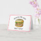 Carte drôle pour la Saint-Valentin ou un anniversaire avec un jeu de mots sur la nourriture. Joli cheeseburger de dessin animé avec "Tu es le pain que je veux." sur le devant et "Cliché, mais vrai." à l'intérieur.