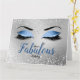 Blue Fabulous Parties scintillant Eyes Large Birthday Card comporte une paire de grands couvercles oculaires avec un ombrage bleu parties scintillant pâle, doublure d'effet diamanté avec de longues cils noirs sur un arrière - plan d'effet parties scintillant argent. Le mot "fabuleux" est écrit en écriture dans un bleu pâle assorti à la couronne d'une petite reine d'argent accrochée au sommet de la boucle sur le "L". 'Avoir A' et 'Anniversaire' écrit en noir plus petit script au-dessus et au-dessous du mot fabuleux. L'intérieur de la carte est blanc et à l'intérieur il y a une petite couronne de reine d'argent. Sur le dos extérieur, l'arrière - plan est le même effet de parties scintillant argenté que le devant et une petite paire des mêmes yeux de parties scintillant bleue et des cils noirs sont au centre inférieur. Conçu par Jacqueline.