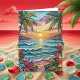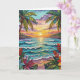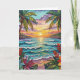 Pretty tropical coastal birthday card. A cute coastal themed poem with birthday wishes inside can be personalized or left alone.. Gorgeous ai impasto oil painting style illustration of the blue ocean, a sandy beach surrounded by palm trees at sunset. Inside is a cute crab and sea glass.