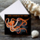 Une pieuvre orange sur fond de noir. Tentes d'octopus dans et autour des bulles et mandala bleu