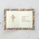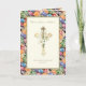 Présentant une croix dorée avec une superposition de lis blanc de Pâques et une bordure colorée d'œufs de Pâques ukrainiens. Un verset des Écritures est également en dessous de la croix.