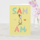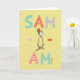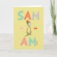 Ne le frappez pas avant de l'essayer, il se peut que vous l'aimiez ! GREEN EGGS AND HAM est une histoire classique du Dr Seuss où Sam-I-Am essaie d'amener son ami à essayer des oeufs verts et du jambon, et il finit par les aimer. Regardez Sam-I-Am tenant une pancarte avec son nom dessus.