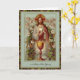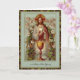 Les cartes de messe sont le moyen idéal de montrer votre amour en toute occasion. Avec une belle image vintage de Jésus tenant l'Eucharistie entouré de chérubins et de fleurs. Le calice doré est au premier plan.