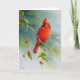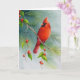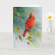 Carte Oiseau cardinal rouge mâle, aquarelle