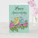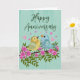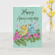 Carte Oiseaux d'anniversaire avec fleurs et coeurs