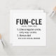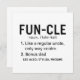 Simple design d'oncle d'anniversaire heureux avec la citation "Fun-cle noun (fuhn-kel)..." Ce joyeux anniversaire d'oncle saluant sous forme de définition fait un beau cadeau pour le papa bonus dans votre vie.