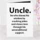 Oncle Birthday Inspirational Funny Citation Uncle Card conçu par Nisha Prabhu. Voici encore une année d'être l'oncle le plus cool ! Joyeux anniversaire à l'homme qui sait toujours nous faire rire et nous inspirer à être notre meilleur être. Bravo, mon oncle !