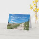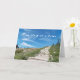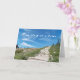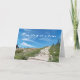 Blank style greeting card featuring a photo image of hiking trail steps ascending toward a blue sky filled with wispy clouds along with the inspirational/motivational words, "One step at a time." Select from matte or glossy style card.