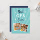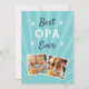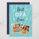 Célébrez un Opa bien-aimé cette Fête des pères avec ce design carte photo cool qui présente deux photos préférées de ses petits-enfants avec l'expression "meilleur Opa jamais" en lettres blanches et bleues sur un arrière - plan aqua. Ajoutez un message préimprimé personnalisé au verso.