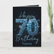 Célébrez 70 années incroyables avec cette magnifique carte d'anniversaire personnalisable. L'avant est ornée d'un audacieux "70" orné de pierres précieuses bleues, symbolisant la force et la sagesse. Élégant script ajoute une touche personnalisée, se démarquant magnifiquement contre un riche arrière - plan aux tonalités profondes qui améliore le scintillement. Le texte à l'avant et à l'intérieur est entièrement personnalisable, ce qui vous permet d'élaborer un message unique pour le destinataire. De plus, avec une option de téléchargement numérique instantané, vous pouvez personnaliser et imprimer sans effort. Faites de cette étape une étape vraiment inoubliable - commencez à customiser dès aujourd'hui !
