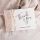 Cette élégante carte de remerciements moderne à mariage plat est dotée d'une bordure en aquarelle ivoire ornée d'une parties scintillant en faux or. Le texte personnalisable combine les mots "Merci" dans le script d'écriture manuscrite gris charbon et les noms de la mariée et du marié en caractères italiques sur un arrière - plan blanc. Ajoutez votre propre message personnel à l'envers.