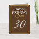 Or moderne et Fils Brown 30e anniversaire, un design unique fait pour quiconque cherche quelque chose de spécial pour son fils à son anniversaire. Le design comporte un cadre doré agréable avec du texte personnalisable que vous pouvez personnaliser, alors n'hésitez pas à le customiser pour faire votre propre invitation d'anniversaire. Si vous avez un problème pour customiser le modèle, n'hésitez pas à envoyer un message au concepteur :)