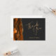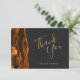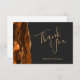 Cette élégante carte de remerciements mariage moderne est ornée d'une bordure en aquarelle orange rouille et brûlée, bordée d'une parties scintillant en faux or. Le texte personnalisable combine les mots "Merci" en écriture manuscrite couleur or et les noms de la mariée et du marié en caractères italiques sur un arrière - plan sombre. Ajoutez votre propre message personnel à l'envers.