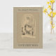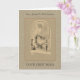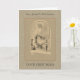 Ceci est une belle carte d'ordination sacerdotale, de première messe ou d'anniversaire avec une image conçue sur mesure sur le devant du prêtre tenant l'eucharistie à l'autel et Jésus regardant d'en haut. Une dentelle marron clair sert de fond. Toutes les polices et tous les textes peuvent être modifiés.