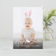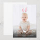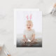 Cette adorable carte de Pâques personnalisable présente votre photo personnalisée en arrière-plan avec des oreilles de lapin roses et blanches superposées par-dessus. Les oreilles sont mobiles et peuvent être redimensionnées ou repositionnées à l'aide des outils de montage de Zazzle, assurez-vous donc de les ajuster pour qu'elles s'adaptent à votre photo, car elles ne seront pas placées automatiquement.